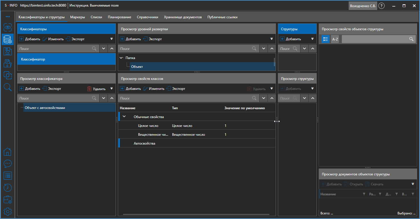 Для добавления автосвойства в тестовом проект создан классификатор (Классификатор), а нем класс (Объект с автосвойствами).