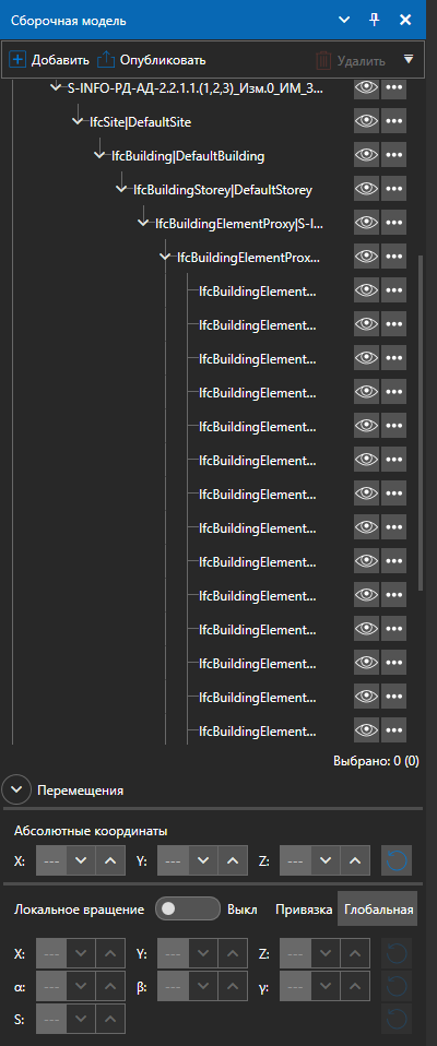 Выберите IFC, FBX, TIF, TIFF, OBJ, 3DS, STEP, STP, DAE, IGES, STL файлы модели-компонента и нажмите «Открыть»;