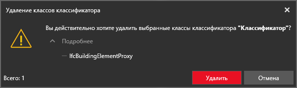 Удаление класса сопровождается удалением всех взаимосвязанных объектов структур, производными от данного класса и их данными (свойствами и документами объектов, календарными графиками, маркерами).