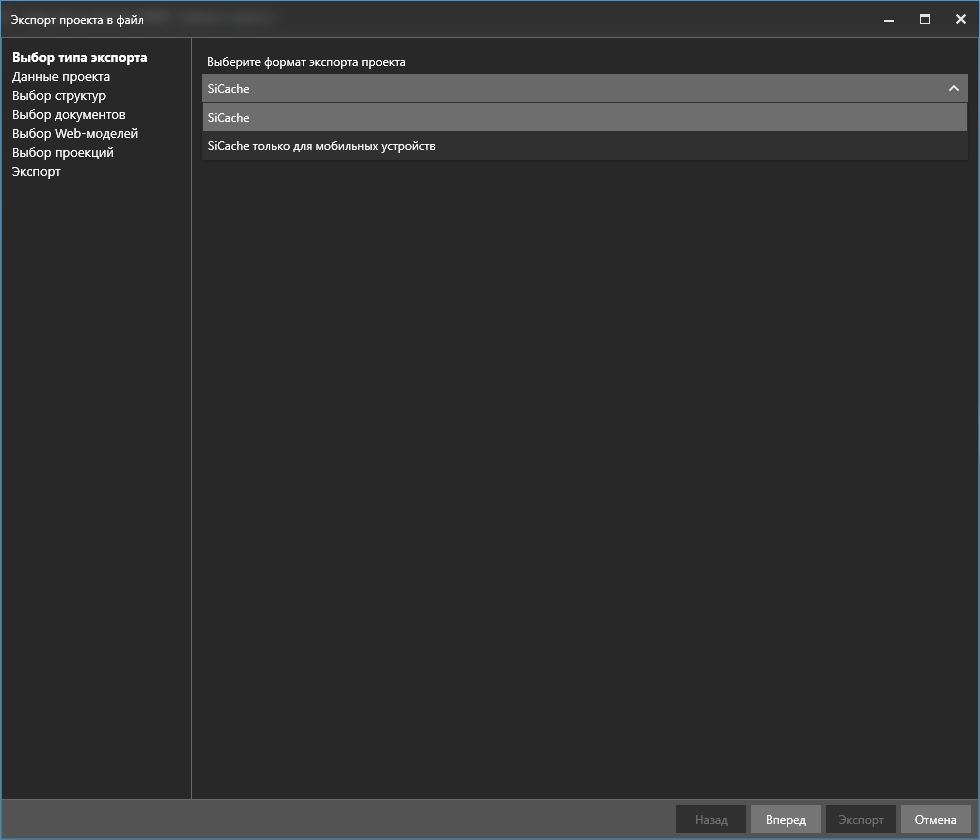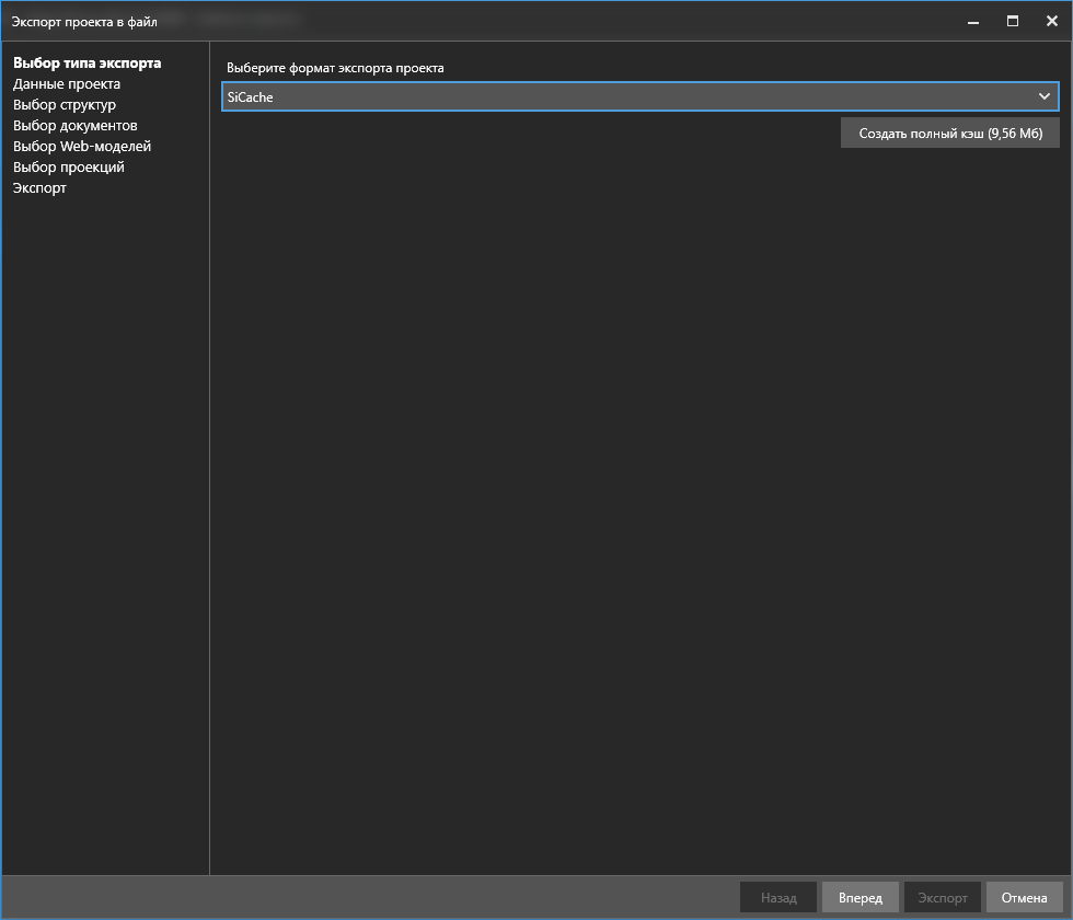 Механизм «Экспорт проекта в файл» позволяет выгрузить проект (КЭШ) для дальнейшего просмотра проекта с использованием просмоторщика (S-info Lite).