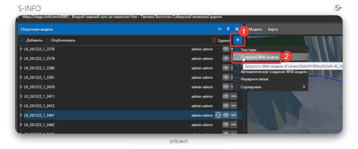 Так же веб-клинент позволяет просматривать веб модель проекта (основная модель в проекте (папка web3d))