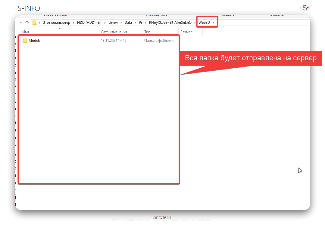 Обновление данных на сервере. При загрузке на сервер все ранее загруженные файлы модели будут удалены, и заменены новой структурой папки WEB3D. Загруженная папка станет актуальной моделью проекта.