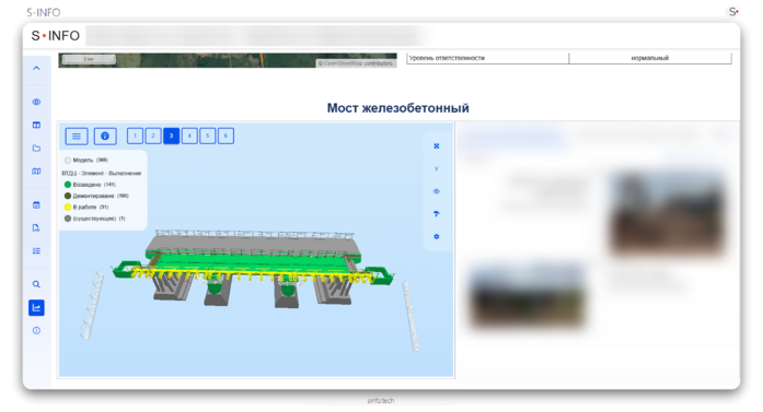 WEB-клиент предоставляет возможность использовать виджеты в дашборде для работы с отдельными частями 3D-моделей. Подобные виджеты могут получать источник данных в виде документов — объектов, к которым подключены файлы моделей. Это дает возможность загружать не всю модель сразу, а только необходимые части, что положительно сказывается на скорости работы модели и позволяет создавать виджеты с определенными сооружениями для дашборда (мост, здание и т.д.), загружая в дашборте только их.
