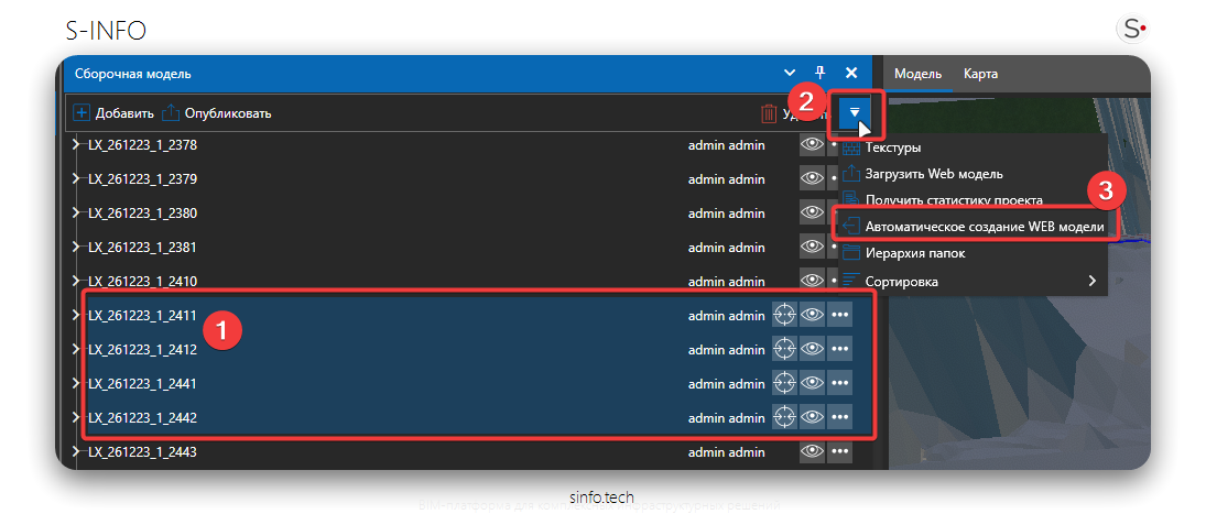 Основная цель такой оптимизации — облегчить модель для стабильной работы в браузере, сохраняя при этом связь с данными проекта через идентификаторы (IdOnScene).