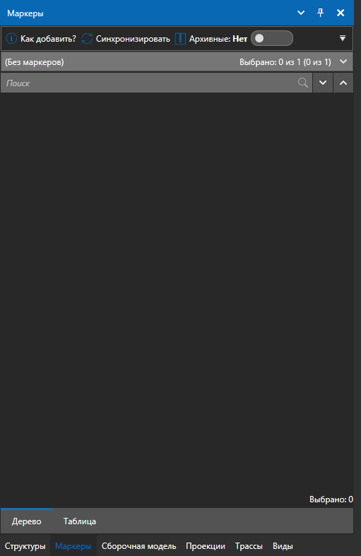 Панель «Маркеры» предназначена для управления маркерами на трехмерной модели.