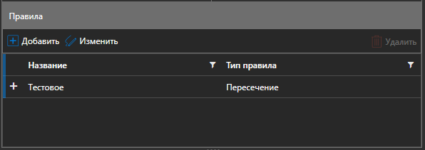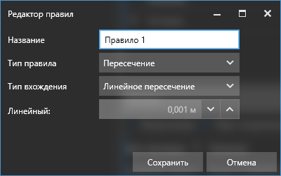 Тип правила определяет взаимное отношения объектов в коллизии, на данный момент реализовано только «Пересечение».