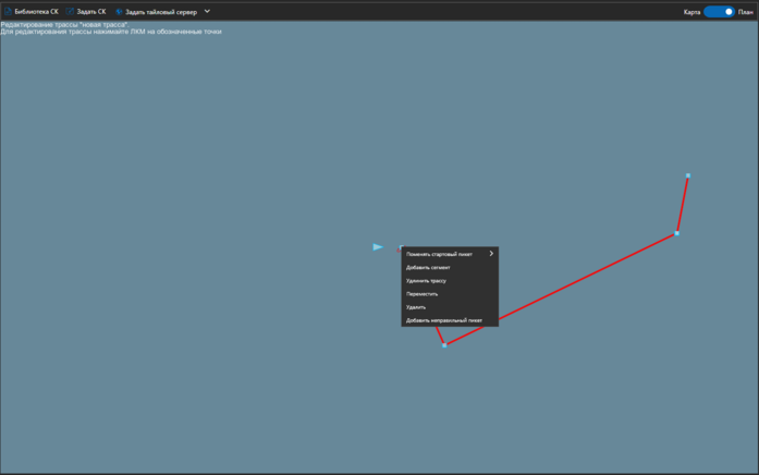 Для сохранения изменений и выхода из режима редактирования необходимо нажать на кнопку «Принять» на панели «Трассы».