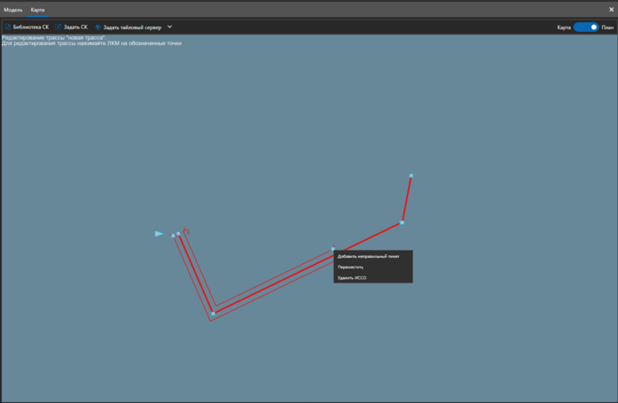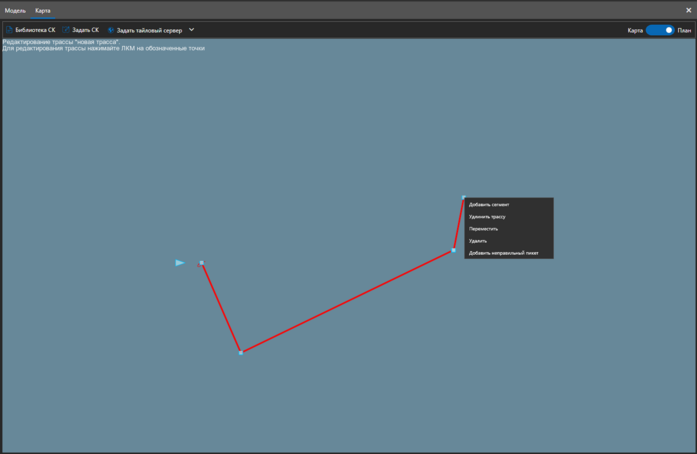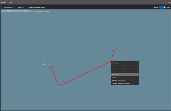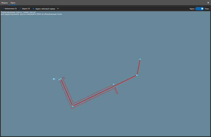 Для редактирования добавленной в проект трассы необходимо выбрать трассу на панели «Трассы» и нажать на кнопку «Редактировать».