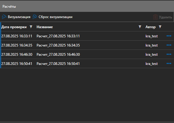Ниже правил находится таблица с результатами поиска коллизий (4). Расчет можно повторять несколько раз, например добавляя или удаляя правила. Каждый расчет доступен только для чтения и содержит в себе список найденных коллизий.