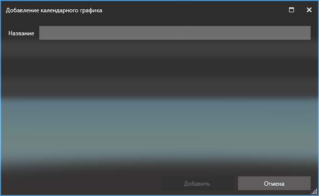 после чего откроется окно и нужно будет ввести наименование календарного графика и нажать кнопку добавить.