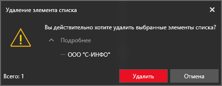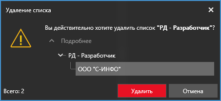 Внимание! Удаление списка возможно только, если его данные не используются в классификаторах и структурах. До удаления списка следует удалить все поля данных, которые ссылаются на этот список.