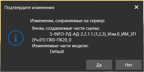 Система выдаст информационное сообщение со списком изменений в сборочной модели. Нажмите «Да» и произойдет процесс синхронизации с сервером;